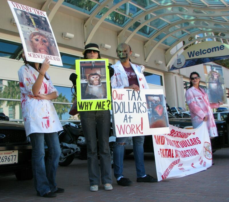 Protesters told the San Diego Union-Tribune at the time that they were trying to “open a dialogue” with neurologists about the role of primate experiments in neurological research.