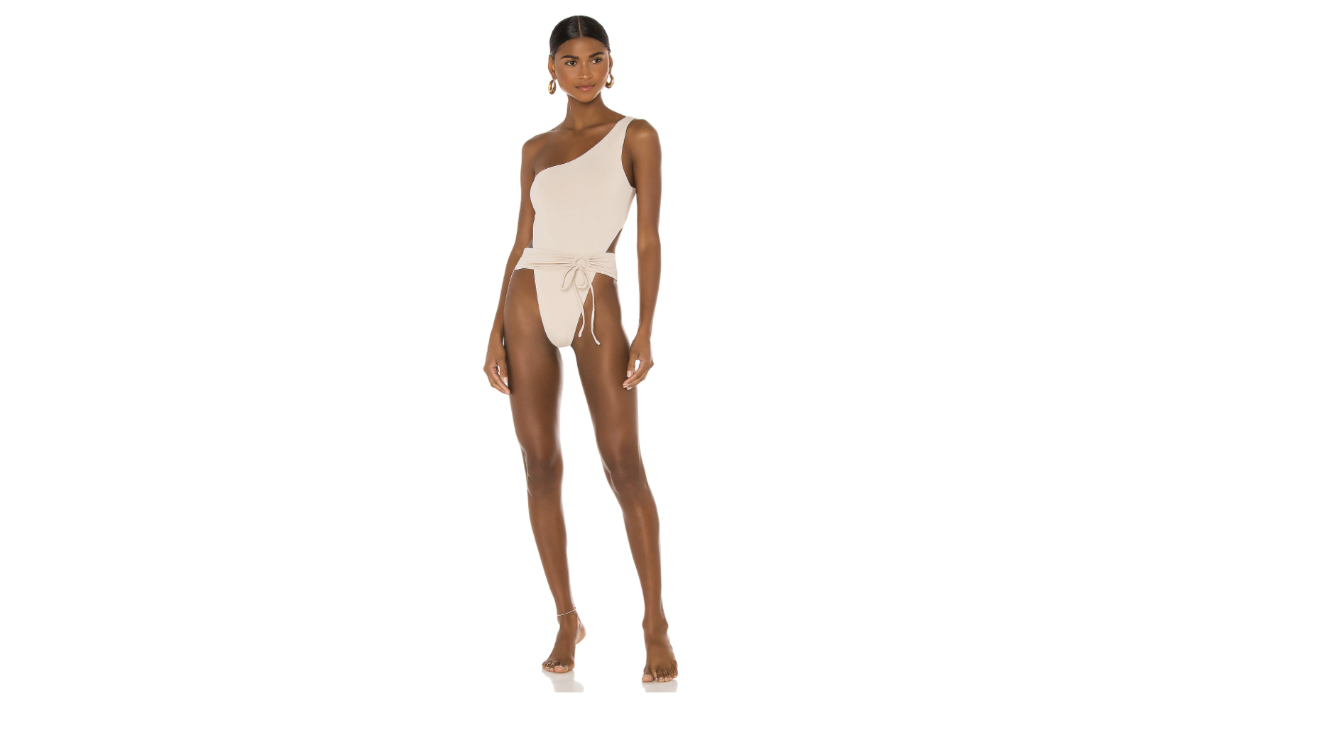 Show off some skin in this next-level swimsuit from Revolve. The one-shoulder suit has a waist-tie closure to keep everything in place while showing off some leg above and below. Choose between creamy coconut or black shades for that just-right look.