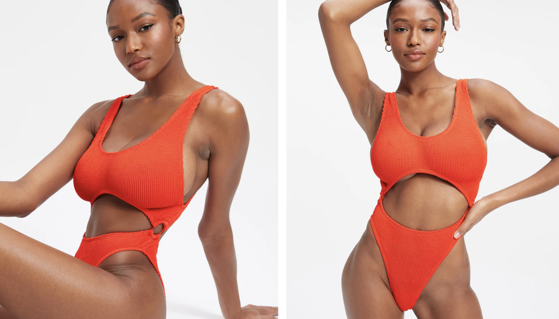 Can’t decide between a bikini and a one-piece? A monokini is a perfect way to bridge the gap. This Good American option comes in a slew of colors and features cut-outs at the waist, back, and sides. High cuts at the hip show off your legs. A ribbed texture gives this swimsuit added depth.