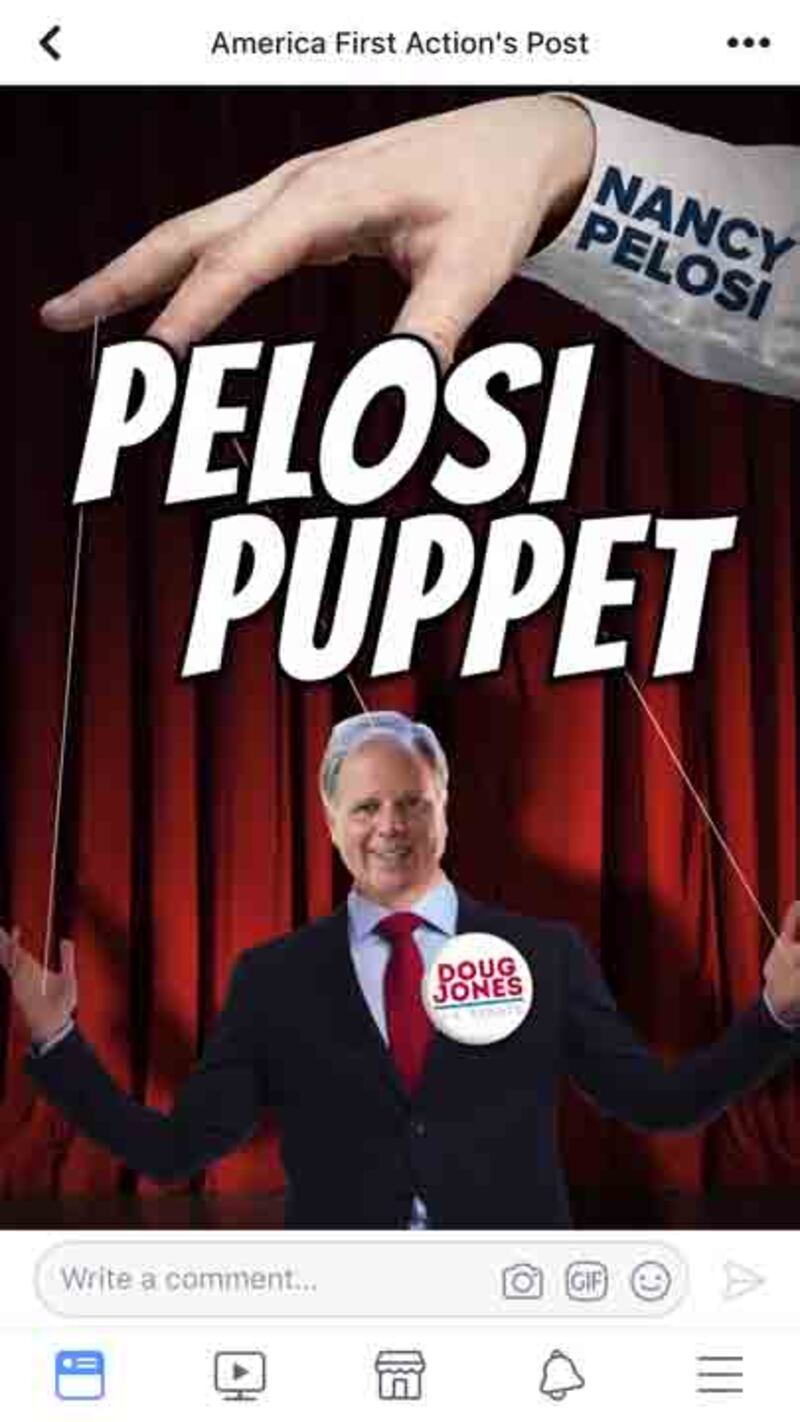 BIRMINGHAM, Alabama—Yvonne Trosclair doesn’t know who’s behind America First Action—which keeps running pro-Roy Moore ads here on television and on Facebook ahead of the U.S. Senate election on Tuesday—but she knows they’re not from Alabama.