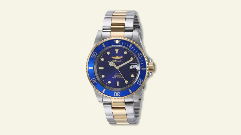 Invicta Men's Pro Diver Two-Tone Automatic Watch, $85 on Amazon: Water-resistant and carrying thousands of high ratings, the Pro Diver is a great investment. The blue contrasts sharply with the stainless steel and gold to elicit a response from anyone who sees it and you’re sure to enjoy slapping it on for any occasion.
