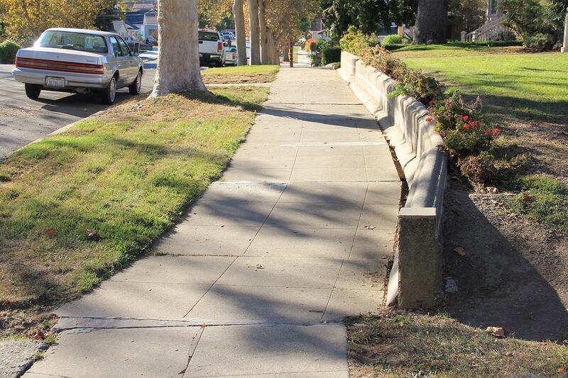 There’s much more. Stop at the north end of 6th Street, for example, just across from Dunne Park, and look at the half-collapsed retaining wall hanging on for dear life in front of number 558. It looks like someone backed a truck into it—but it’s just plate tectonics bulging northward without regard for bricks or concrete.