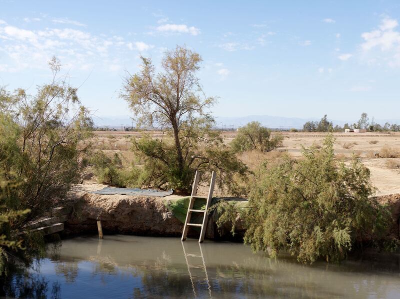 Cross the East Highline Canal and you have arrived at the camp’s outer perimeter. The canal is narrow, lined with scrub, and without the bridge and its slight rise you would miss it. Among the first generation of Imperial Valley’s water carriers, its modest width and soft edges feel archaic, picturesque like the narrow boat canals of England and France. Unlined, meandering, and still below sea level, East Highline holds its position along the Valley’s easternmost fringe and its highest contours. As it signals an end to the manufactured landscape of the Salton Basin, it also marks a first line of defense for Camp Dunlap—an adopted moat and water source for opportunistic military planners, who like the residents of Slab City were resourceful in their adaptation of existing conditions to make defensible space. The desert requires and allows for that. Lines of offense to commandeer and irrigate a productive landscape become lines of defense for a camp and its wartime efforts.