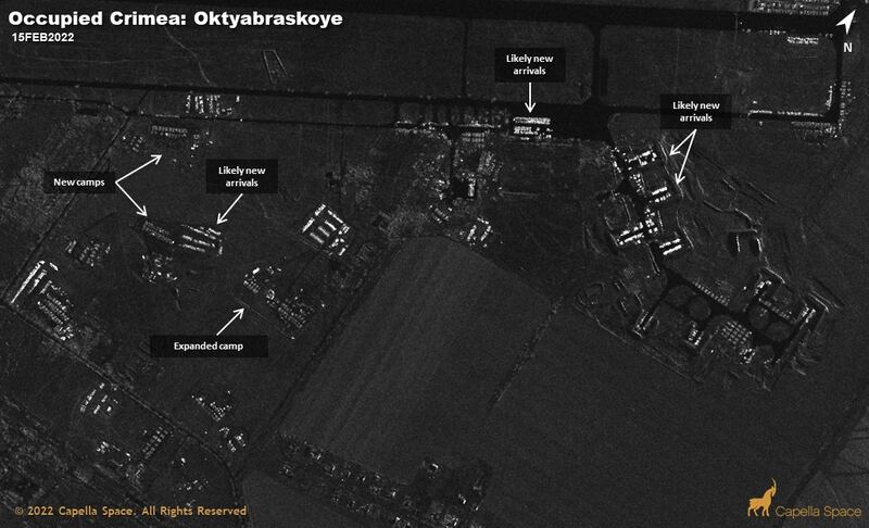Though satellite imagery provided by Capella Space appears to show that at least some Russian military facilities in the Ukrainian territory have emptied out, it’s unclear where that equipment is headed.