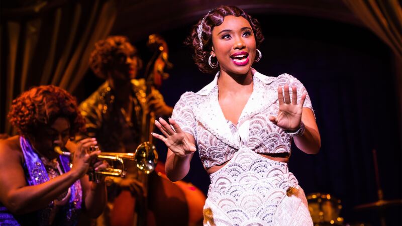 Sugar is oddly underwritten. This isn’t to compare Hicks’ performance to Marilyn Monroe’s, but rather question the rendering of her character. From the outset, Sugar knows everything, she wisecracks and whipcracks, she is nobody’s fool. One of her songs, “At the Old Majestic Nickel Matinee,” movingly lays out her desire to be a Hollywood star as rooted in her experience of being Black growing up in Georgia, but this narrative strand is left in lyrics and not developed. (The musical numbers in Some Like it Hot seem to unpack the characters more confidently than the book.)
