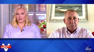 Former House Speaker John Boehner made quick work of Meghan McCain on The View Monday morning. He faced a somewhat more formidable interviewer in Stephen Colbert later that night.
