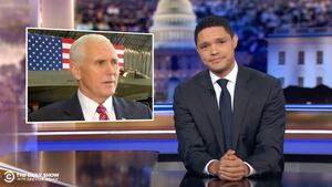 “So what’s his excuse?” Colbert asked. “Officials close to Pence say Pence met with [Volodymyr] Zelensky ‘probably without having read—or at least fully registered the transcript,’” he added, quoting from a Washington Post report.