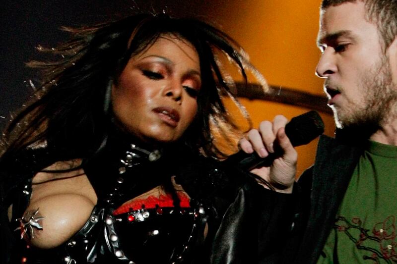 The pearl-clutching came fast and furious. It was seen by the most uptight of us as a symbol of America’s moral decline, as if this errant black boob had the trappings of a sordid Oedipal saga, forever blinding a generation of impressionable children. FCC chairman Michael Powell deemed it “classless, crass and deplorable.” Mea culpas abounded. MTV, which produced the CBS-aired show—the two networks share a parent company, Viacom—said, “The tearing of Janet Jackson’s costume was unrehearsed, unplanned, completely unintentional and was inconsistent with assurances we had about the content of the performance. MTV regrets this incident occurred and we apologize to anyone who was offended by it.” CBS stated, “We attended all rehearsals throughout the week and there was no indication that any such thing would happen. The moment did not conform to CBS broadcast standards and we would like to apologize to anyone who was offended.” NFL commissioner Paul Tagliabue laid down the hammer, releasing a statement that said, “The show was offensive, inappropriate and embarrassing to us and our fans. We will change our policy, our people and our processes for managing the halftime entertainment in the future in order to deal far more effectively with the quality of this aspect of the Super Bowl.”