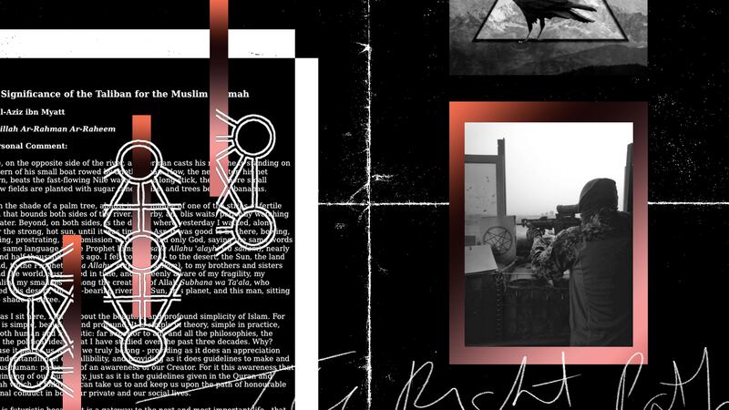Anyone familiar with Myatt’s other writings would recognize it immediately: the clunky naturalist poetry (“I felt connected—to the desert, the Sun, the land around, to the Prophet”) and the layered philosophies that never seem to say anything (“Islam is futuristic because it is a gateway to the next and most important life.”) The short treatise is an endorsement of the Taliban as “inspiring.”