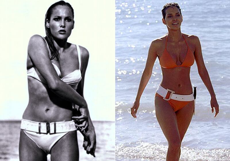 Ursula Andress set the standard for all future Bond girls in the first Bond adaptation Dr. No. Halle Berry mimicked the famous scene in the 2002 film Die Another Day.