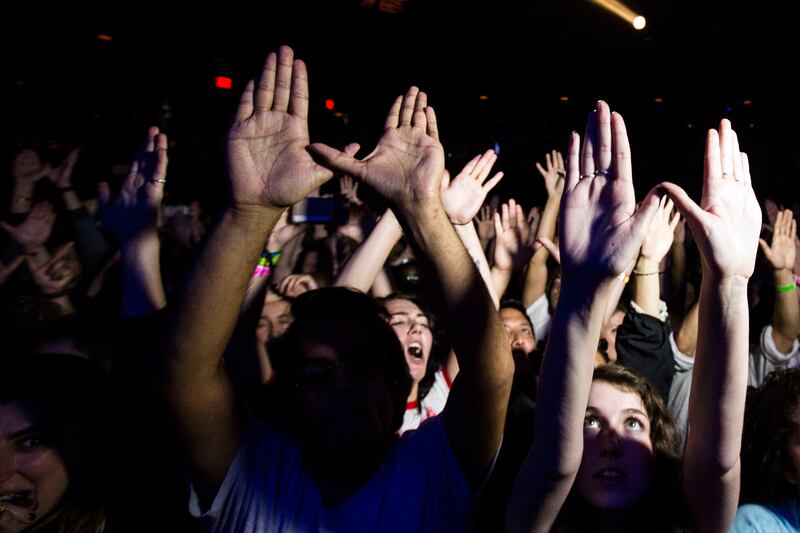 Wu-Tang Clan fans cheer as the megagroup takes the stage at Austin City Limits.