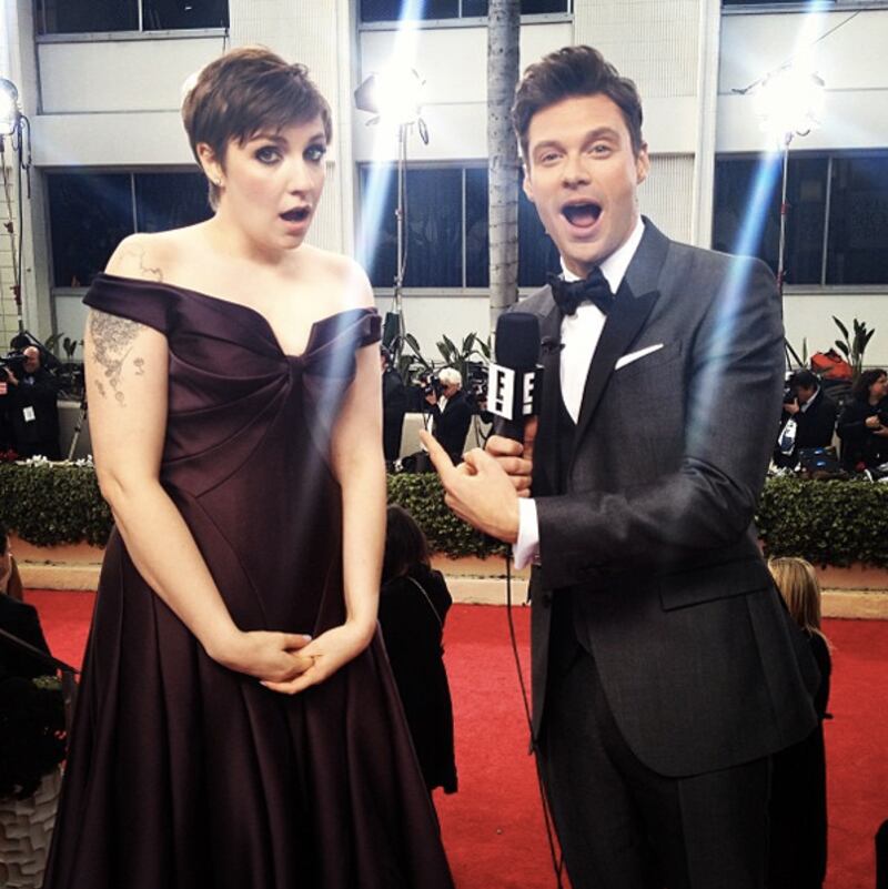 Ryan Seacrest posted this photo of himself and Lena Dunham from the Golden Globes’ red carpet, with the caption “almost getting it kind of together.” And the duo definitely has: Dunham won two Golden Globes for her HBO series Girls and the Seacrest hosted the 12th season of American Idol, which premiered this week.