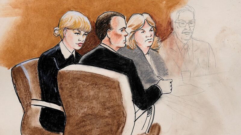 A sketch of Taylor Swift and her attorneys in Denver Federal Court during the Swift groping trial in Denver U.S. August 8, 2017.