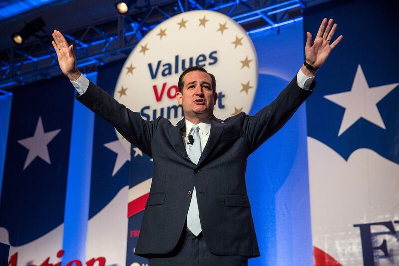 After all the abuse he’s taken of late, Cruz must have felt like he had entered the promised land. Long before he took the stage, the mere mention of his name sent this crowd into a swoon. And when he at last strode out, live and in the flesh, the entire room leapt to its feet—not just clapping, but waving hats and arms and whooping with delight. As Cruz tried to speak, one avid fan near the front cried out in ecstasy, “If God is for you, who can be against you?!”