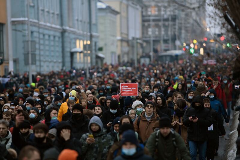 It turned out to be by far the biggest rally Moscow had seen since the summer of 2019. At least 30,000 people joined the anti-Putin protest in Russia’s capital, as dozens of thousands protested across the country, answering Navalny’s call.