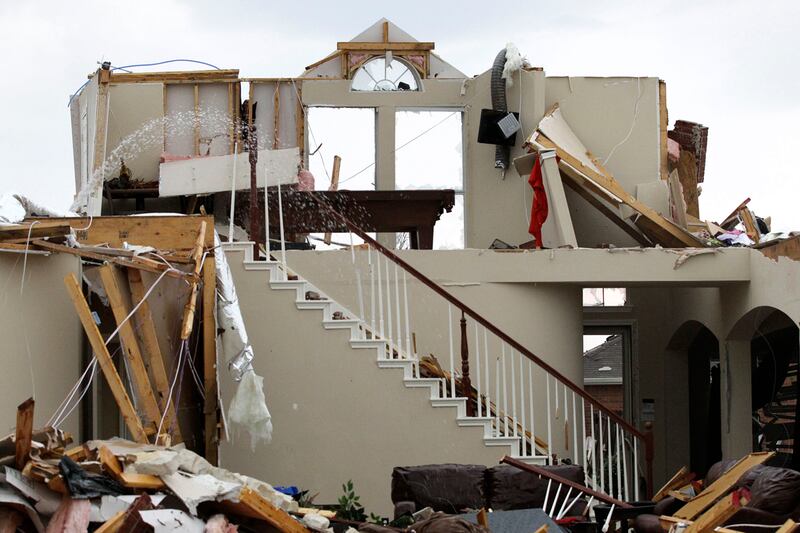 A tornado-damaged home in the Diamond Creek subdivision in Forney, Texas.