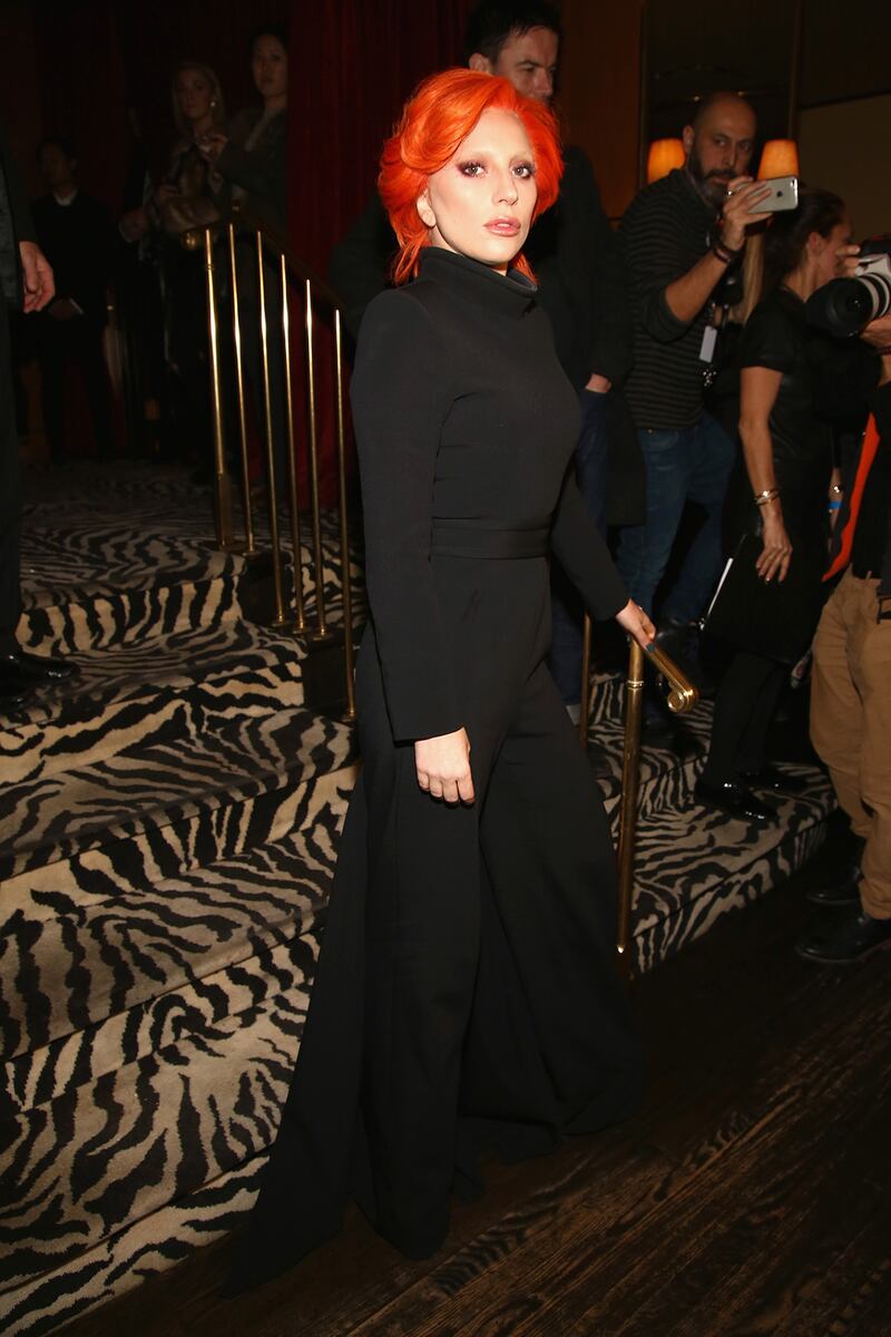 Less than 24 hours later, Gaga was back on the East Coast taking pride of place in the front row—bright orange hair still intact—to cheer Maxwell on as his latest collection paraded around the dining room-cum-runway of Manhattan’s swanky Monkey Bar.