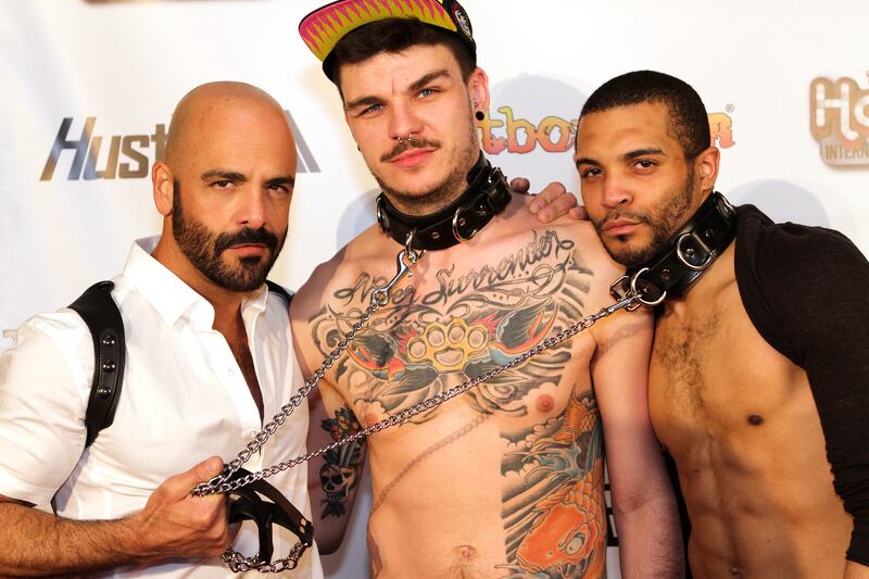 Tyson Tyler, left, nominated for Best Body and winner of the Best Website award accompanied by Leo Forte, far right, who was nominated for Best Fetish and winner of the Best Dressed award.
