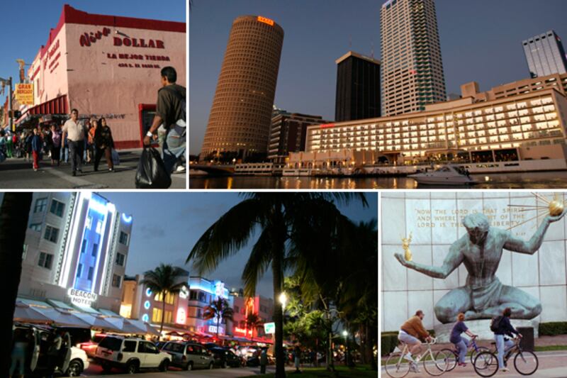 In short, the national numbers are promising, but plenty of people are still hurting. To find the most struggling cities in the country, we used three data points weighted equally: the most recently available unemployment rate (August 2011), median household income, and average debt. Data is from a recent report by Experian and the Bureau of Labor Statistics. The average credit score for each city is included in the gallery, though not taken into account to determine the final ranking. If this data is any indication, the cities struggling the most right now—the ones that may take the longest to recover—are clustered in the South and along the Pacific Coast.