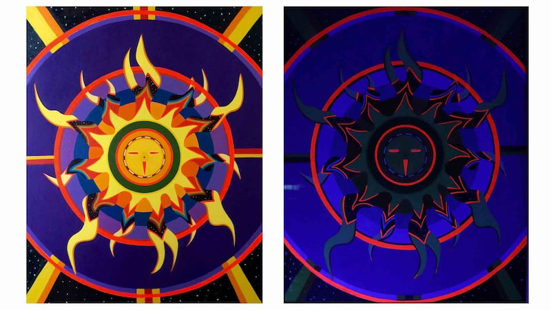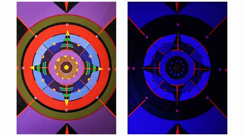 God's Fatherless Star Child. Oil on Canvas (left). God's Fatherless Star Child. Black Light (right).