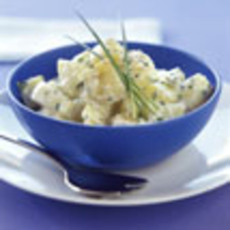 There are many schools of potato salad (OK, they aren't really schools, maybe more like adult-education classes): the mayo class, the vinegar class, the mayo AND vinegar class, the eggy version, skin on vs. no skin, sour cream, warm vs. room temp vs. chilled... and there's no one right way: the perfect potato salad is in the eye of the beholder.