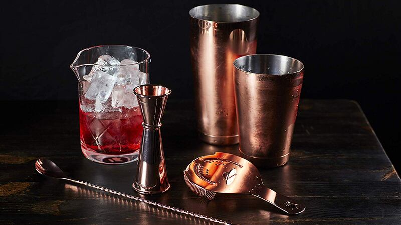 Cocktail Kingdom Essential Cocktail Set, $150 on Amazon: Trade your muddler for a Hoffman bar spoon and the stainless steel to copper-plating in this gorgeous set from a top bar tool-making brand. The cocktail shaker in this set is replaced by Koriko weighted shaking tins and from those to the strainer and jigger, everything’s elevated with copper plating.