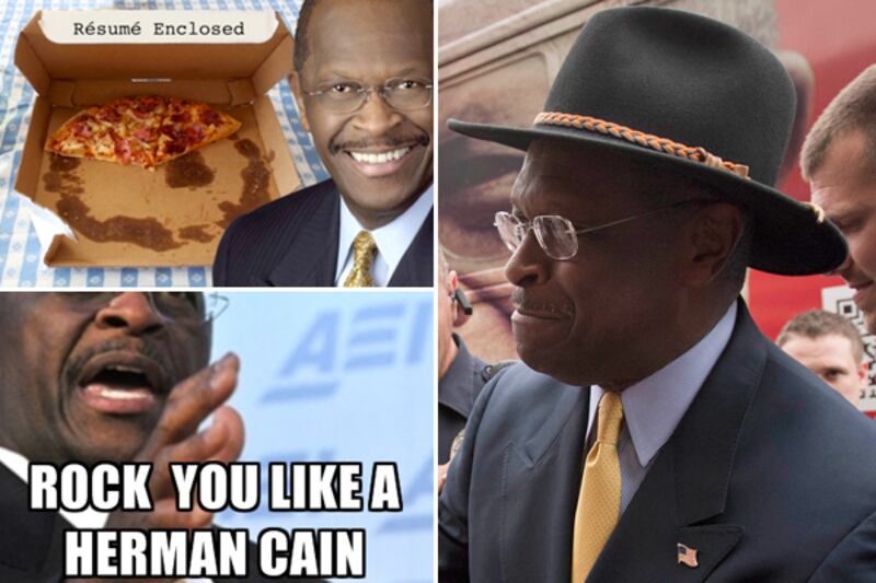 After the first sexual-harassment allegation against Herman Cain surfaced at the end of October, the allegations haven’t stopped rolling in. While the pizza mogul-turned-GOP frontrunner was once top of the polls, a recent fourth accusation is embroiling his campaign in denials and press conferences. Bloggers quickly took up the cause, and the Internet is a hotbed of Cain memes. The Daily Beast rounded up some of the best.