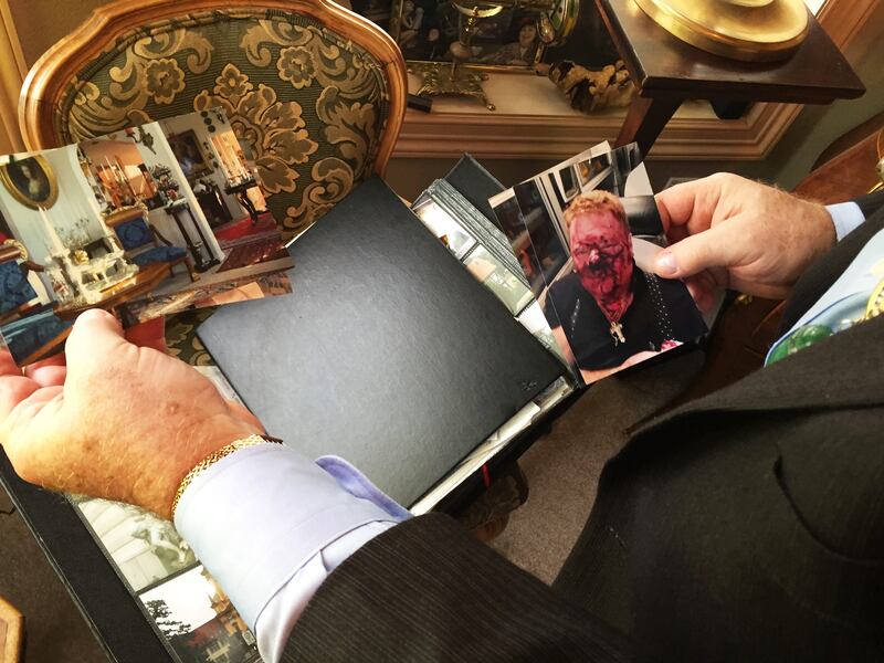 A portly man with receding red hair, von Bothmer was bleeding from a messy wound, blood streaking across his nose and mouth and dripping down his chin toward the lime-sized gold cross that he wore on a necklace. His waist, wrists, and ankles were wrapped in duct tape. Behind him in the living room, more tape littered the floor. Twin holes traced the path of a bullet through a nearby lampshade and into the wall.