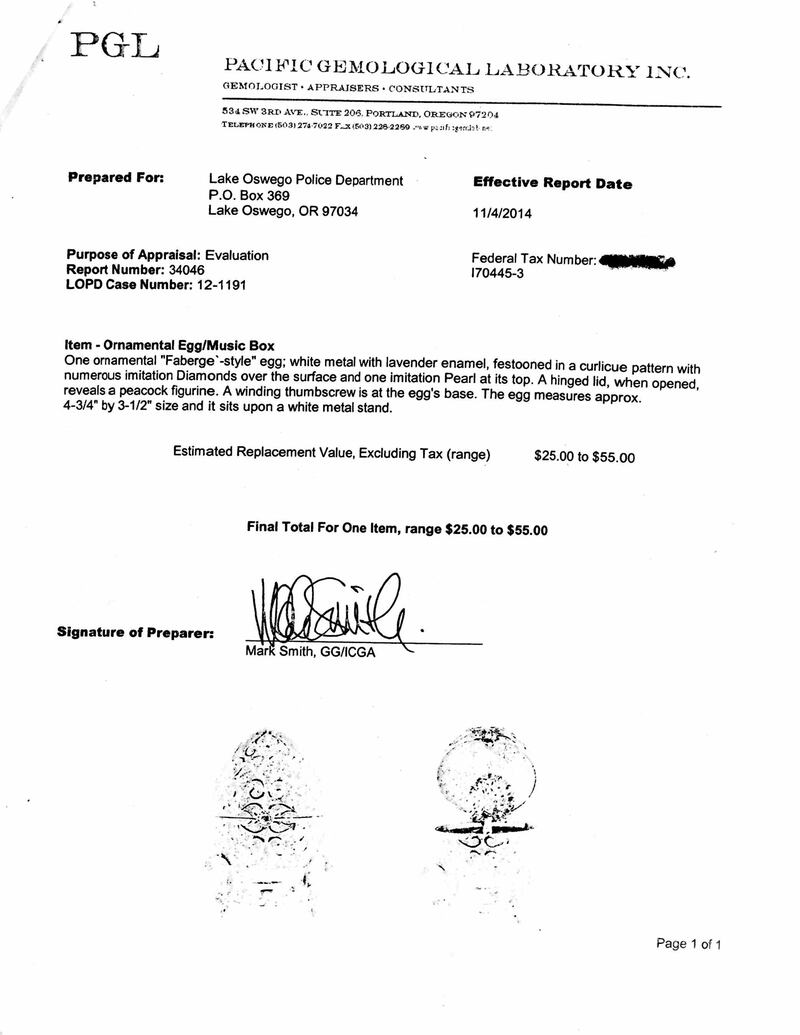 After the trial concluded, the Baron was already on to his next implausible story: Sikkens hadn’t acted alone. He had conspired with the “dirty cops” of the Lake Oswego Police Department to steal the Baron’s art and heirlooms. (Sikkens denies all this, of course.) A year after the case was closed, Ferguson’s colleagues began receiving records requests from the Baron’s lawyer, seeking information about items recovered from the crime scene but not yet returned: a silver brooch, some sort of skull, a colored bowl, a Fabergé egg. In the winter of 2016, the Baron filed a tort claim, too, arguing police never returned his stolen valuables. Not only that, but police were the ones who had stolen them in the first place, concealing the thefts under the guise of the robbery.