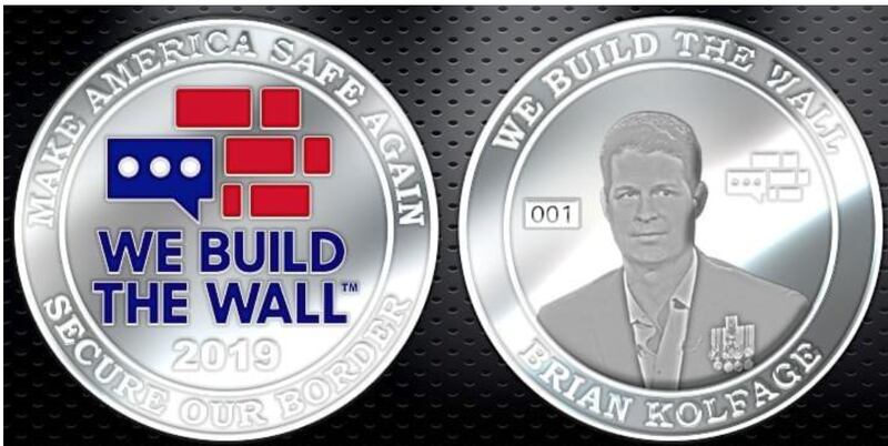 Fans of Brian Kolfage, the triple-amputee Iraq War veteran behind the border wall effort that started on GoFundMe, can now buy a “Brian Kolfage Collector's Coin” coin for $49.99. One side of the coin features the logo of Kolfage’s nonprofit, We Build the Wall. The other side bears Kolfage’s Twitter profile picture, and the inscription “We Build the Wall / Brian Kolfage.”
