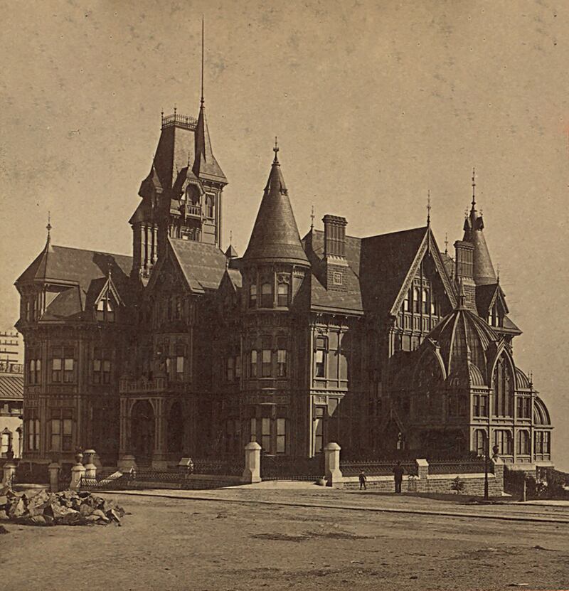 The first of the palaces to go up was that belonging to Leland Stanford (or £eland $tanford as Ambrose Bierce called him). It was constructed in 1874 after he moved from Sacramento.