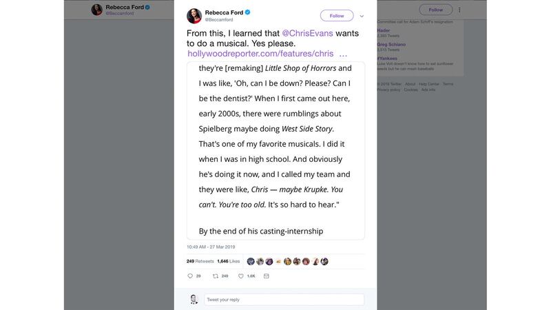 Chris Evans wants to be in a musical! We should let him! In a Hollywood Reporter interview, Evans talked about how it’s his dream to play the dentist in Little Shop of Horrors. If this isn’t manifested immediately, then I no longer believe in Hollywood, The Secret, or the power of prayer. Or, hey, there’s a Guys and Dolls remake that was just announced. I can’t decide if he’s more of a Sky or a Nathan but I will entertain the reality of either!