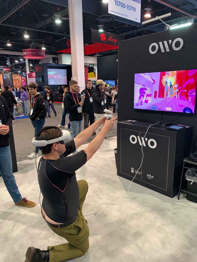 - Development of wearable technologies that mimic human senses beyond sight and sound to make the 3D experience even more immersive. For example, the Spanish company OWO stayed busy throughout CES demonstrating its latest line of “haptic shirts,” which use dozens of sensors to produce a variety of sensations ranging from pain (with the intensity controlled by the user) to the feeling of wind blowing across your body. Likewise, Italian company OVR debuted its new ION 3, a wearable headset capable of producing thousands of customizable scents to enhance mobile, desktop and metaverse experiences. “Smell is our most emotional sense,” said Aaron Wisniewski, CEO and cofounder of the company. “It’s the only one that has a direct connection with the limbus section of the brain—the reptile brain—which has a very strong influence over our emotions and interactions with one another.”