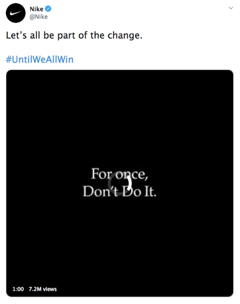 Nike, which admitted to using child labor, was repeatedly criticized for operating sweatshops that paid below minimum wage, got caught up using shell companies to dodge taxes, and recently backed the Chinese government’s erosion of democracy in Hong Kong, honored the nationwide demonstrations against police violence with...an ad.