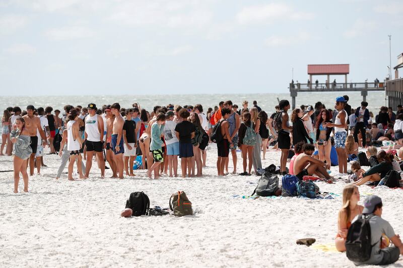 Beachgoers flock to Clearwater Beach during spring break, as the COVID-19 pandemic continues, in Clearwater, Florida, U.S. March 19, 2021.