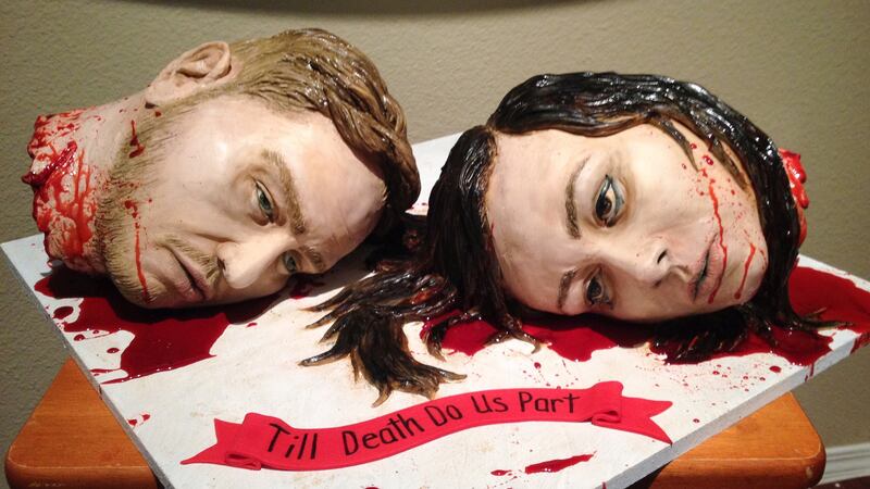 D: “Being married, we each understand how the other thinks. That’s how a lot of our designs will come together. She’ll have an initial idea and we’ll just keep growing that, and then we end up with something like a severed head cake for our own wedding! We definitely ‘get’ each other, and that’s the most important part of working together.”