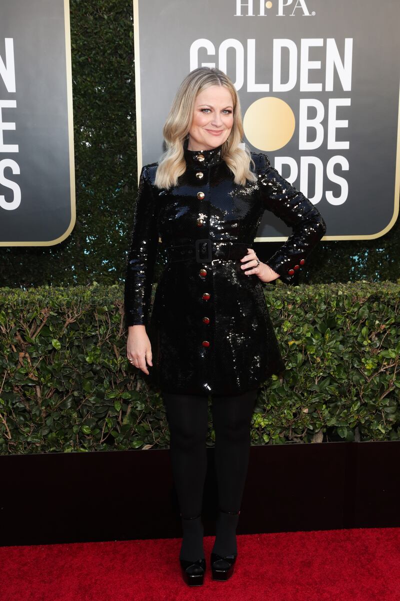 Todd Williamson/NBCAmy Poehler wore the unofficial hosting uniform: metallic Moschino.