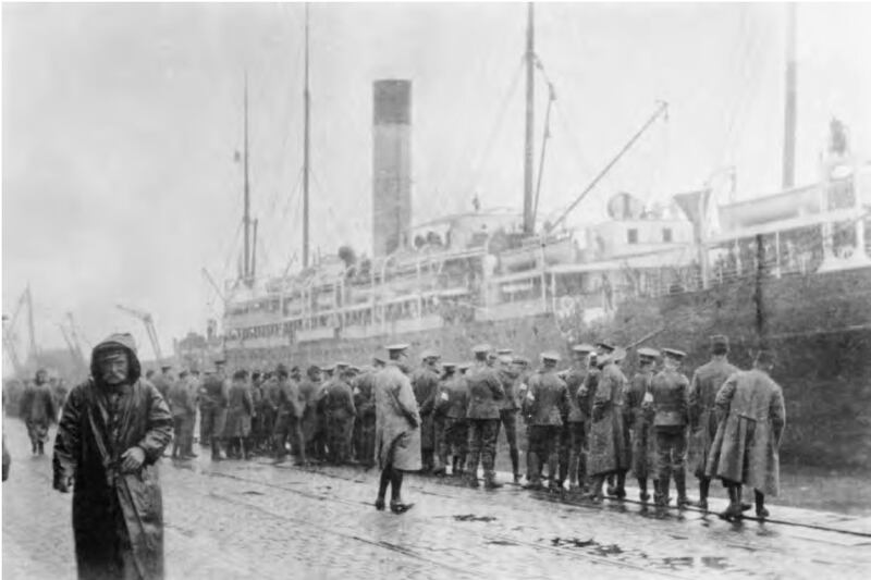 Ist Cameronians having disembarked from the Caledonia as part of the British Expeditionary Froce, Le Havre, France, August 156, 1914. Personal photograph taken by Lieutenant Richard Money, 1st Cameronians, BEF. Courtesy of IWM.