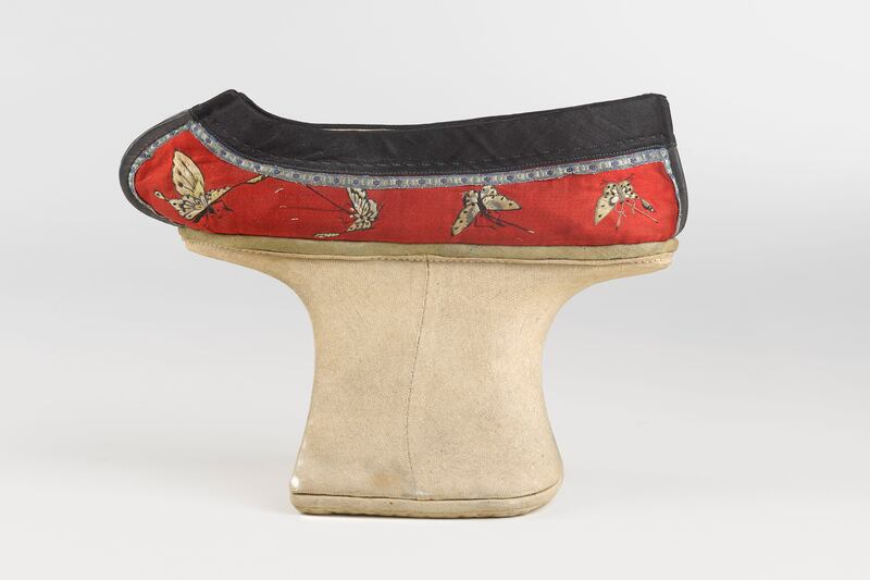 Chinese. Manchu Woman's Shoe, 19th century. Cotton, embroidered satin-weave silk.