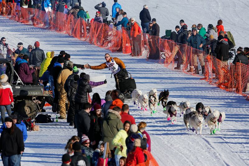 Spectators line 4th Avenue just after the ceremonial starting line of the Iditarod Trail Sled Dog Race in downtown Anchorage, Alaska March 5, 2016.