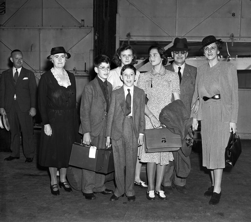 Baron Alphonse Rothschild, formerly of Vienna, with his wife and daughters after arriving in New York City as refugees on the British liner Samaria on July 8, 1940.