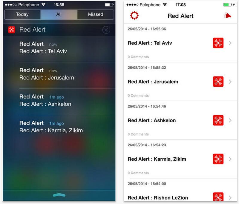 Natan, 38, is a Weight Watchers instructor who usually spends her days crisscrossing southern Israel, but she hasn’t been to work since the rockets first came raining down on her neighborhood. Seeking much-needed peace of mind, she downloaded Red Alert, an app that goes off every time a rocket is fired into Israel. It’s quickly become one of the most popular applications in the country, with 780,000 downloads, most of them in the last week alone.