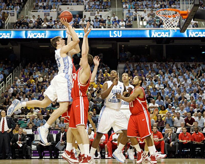 Tyler Hansbrough scored 22 points in their first round game against Radford Thursday, setting an Atlantic Coast Conference record for most career points (2,789). Without point guard, Ty Lawson, the Tar Heels blew out Radford 101-58.