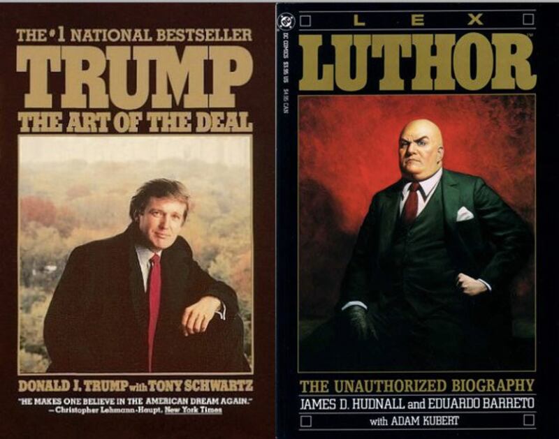 He had an inflated ego and a penchant for naming every company subsidiary after himself (LexCom, LexTel, Luthor Technologies, Luthor Industries, and on and on). But if the parallels to Trump weren’t clear enough yet, the cover of 1989’s one-shot Lex Luthor: The Unauthorized Biography crystallized them. Seem familiar?