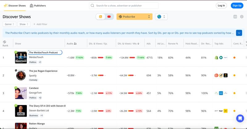 This is more than double the listeners MeidasTouch received in February, when it first dethroned The Joe Rogan Experience for the top spot. Rogan’s podcast registered 64 million downloads.