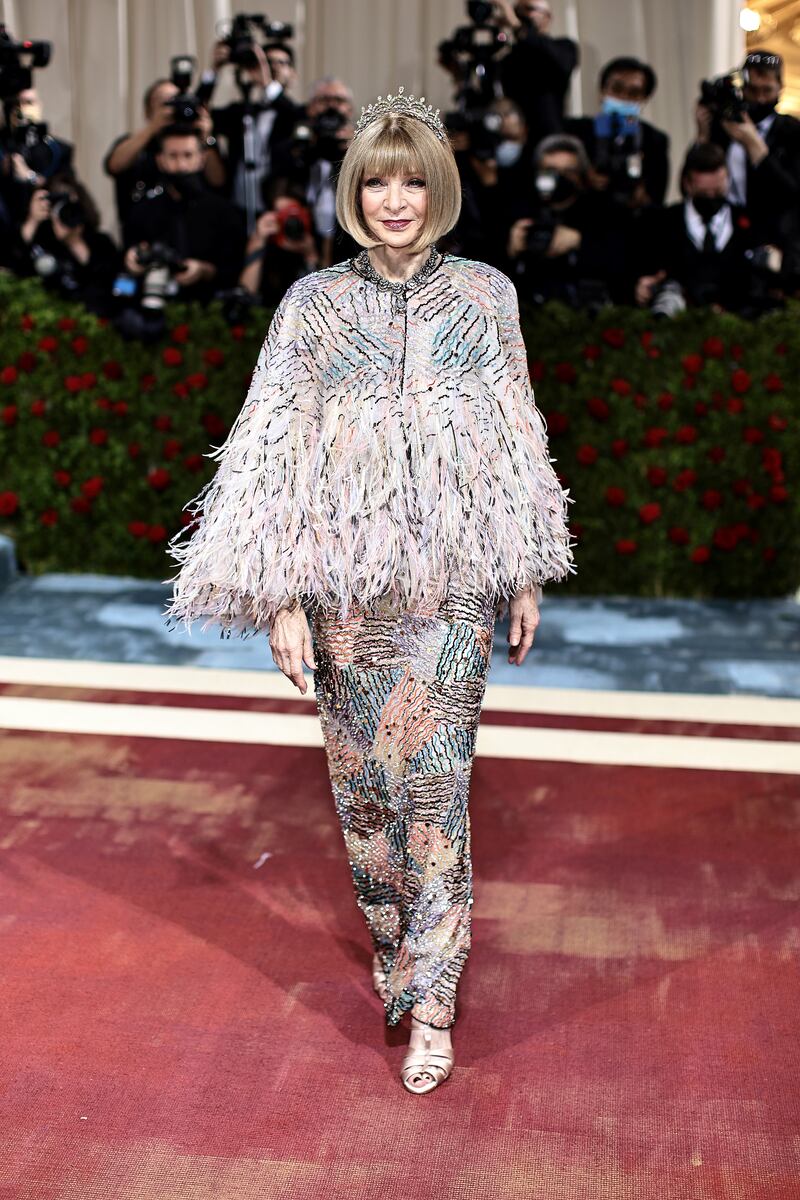 A day ahead of the release of Anna, Amy Odell’s forthcoming unauthorized biography on Vogue’s grande dame, Anna Wintour, the legendary editor herself arrived at the Met clad in armor of sorts: a feathered, bejeweled Chanel haute couture cape and skirt by Virginie Viard.
