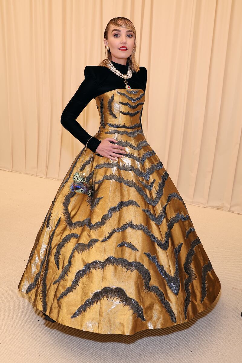 Maude Apatow looks gorgeous, but her fringed Miu Miu dress is lacking in daring; the black, off-the-shoulder Old Hollywood confection would do fine on any old red carpet. This is the MET GALA, guys. Get weird or go home!