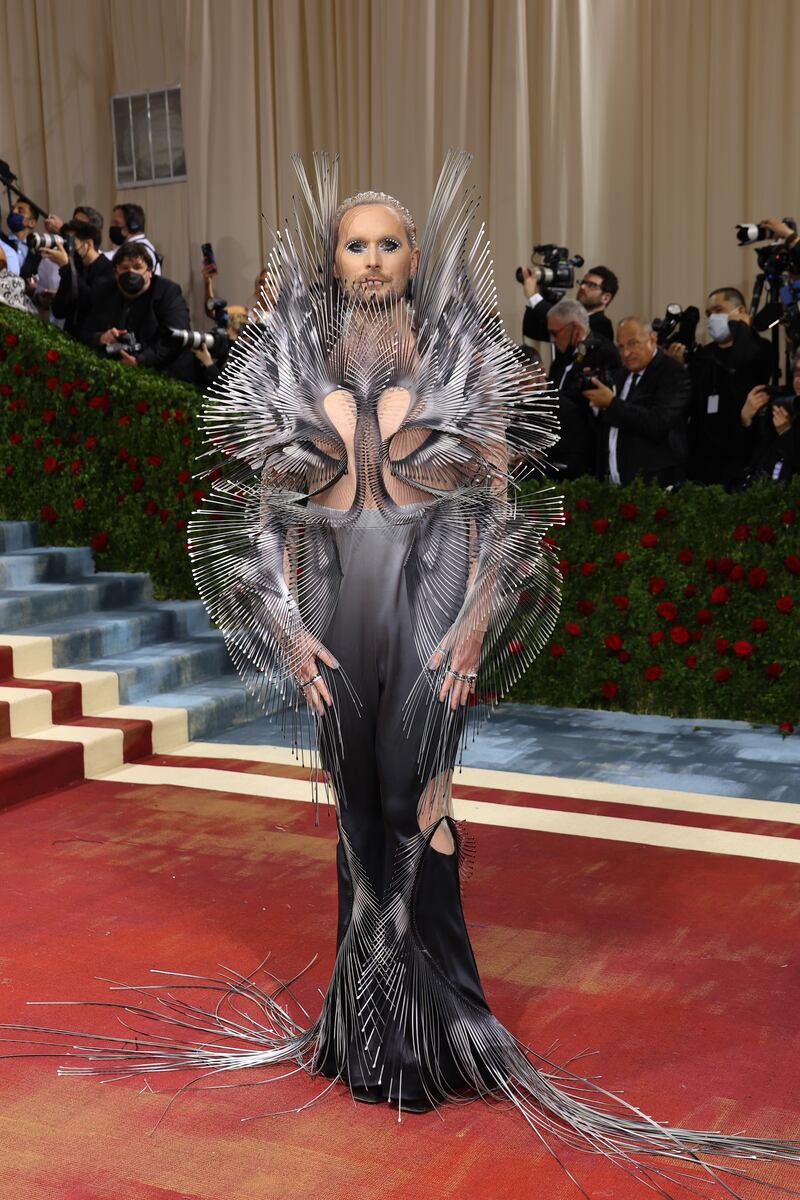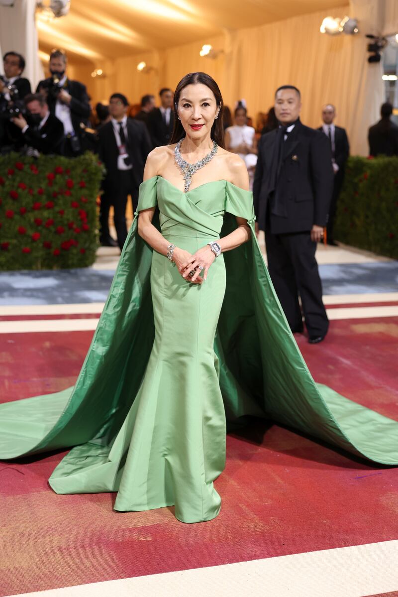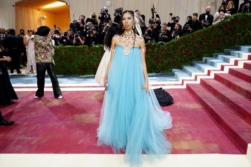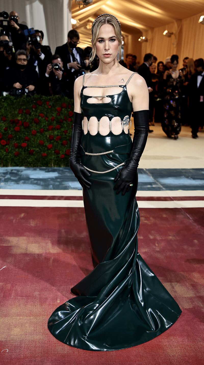 Billie Eilish has been going through notable sartorial phases lately; a recent lingerie update cast her as a 21st century Marilyn Monroe type. For the Gala, Eilish stuck to the theme (THANK YOU) and procured a corseted Gucci dress with lacy green sleeves and a punky black choker. It rules.