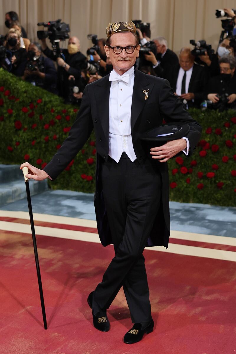 Tommy Dorfman is wearing Christopher Kane and had done a practice run on the red carpet to ensure no tripping or falls on the night. And that crown is 300 years old.