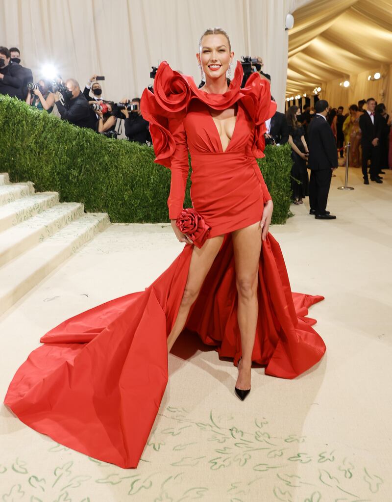 Karlie Kloss wore cherry red Carolina Herrera and walked the carpet not with her husband, Jared’s brother Joshua Kushner, but creative director Wes Gordon. It was, overall, fine. It wasn’t a risk or particularly interesting, but its Americana color got the job done. Bonus points for Gordon’s matching, extra-large red lapel rose.